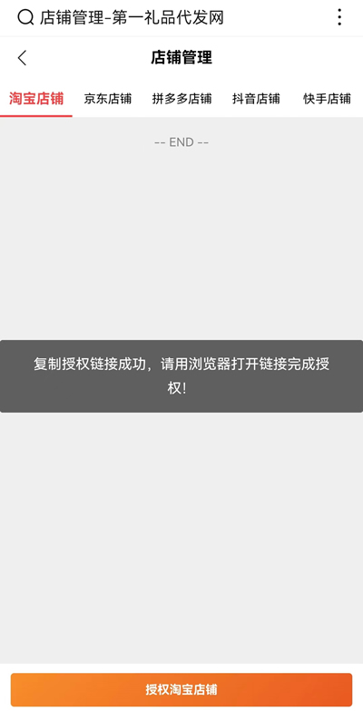 8、復制鏈接到瀏覽器打開,點擊授權淘寶店鋪