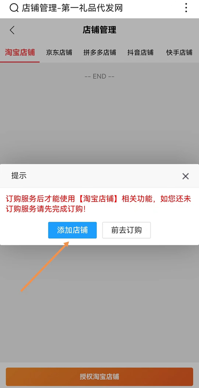 11、回到禮品網 店鋪管理-授權淘寶店鋪-添加店鋪-是